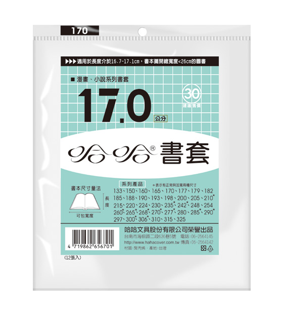 ◎ 品 名:哈哈書套 BC170 傳統塑膠PP書套 17.3 x 26cm 漫畫.小說適用