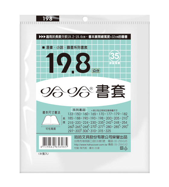 ◎ 品 名:哈哈書套 BC198 傳統塑膠PP書套 19.8 x 32.5cm 漫畫.小說.圖書適用