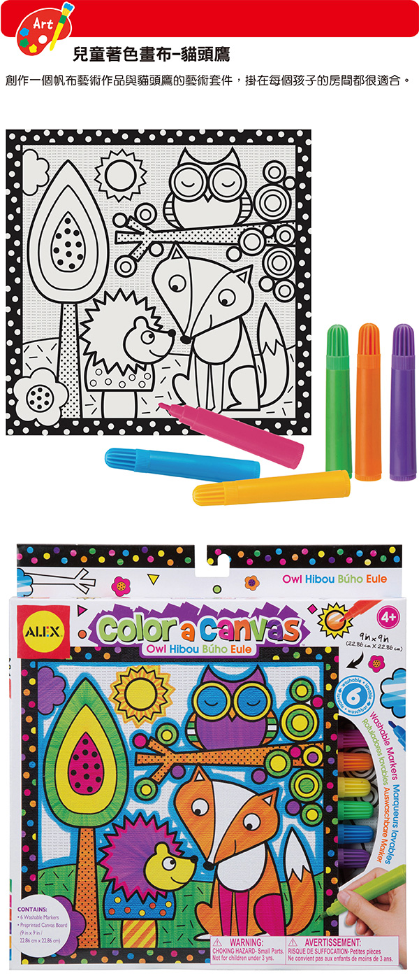 【美國ALEX】兒童著色畫布-貓頭鷹 / 盒