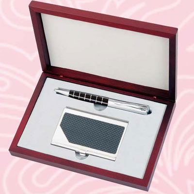 GC2 不鏽鋼格紋原子筆+碳纖名片夾 A012-1/ 組