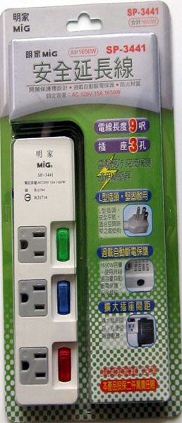 明家 SP-3441 3開3插電腦延長線6呎/ 條