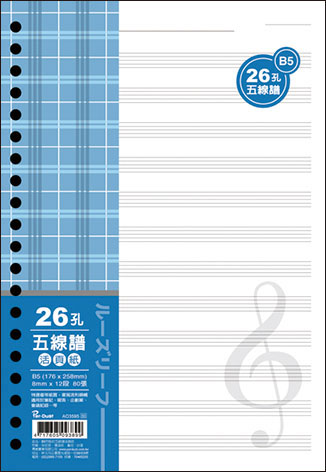 商品名稱:博崴 AO3595 B5 26孔布格紋活頁紙-五線譜 -5包入 / 袋商品單位:5包入 / 袋商品型號:AO3595商品規格介紹:◎尺寸:176W x 257H◎入數:80張(包)◎適用於:B5/26孔夾◎布格紋活頁紙廠商代號:ARA責任代號:HYC