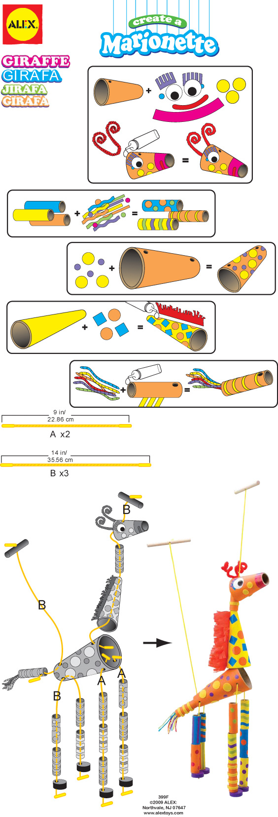 內附完整材料及詳細說明書,不需剪裁,小朋友可以輕易上手!自己做懸絲偶!