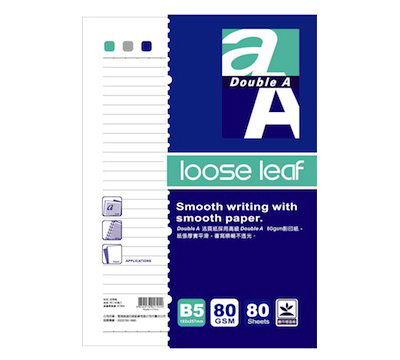 ◆商品名稱:Double A B5 活頁紙-標準橫線 80張入/本