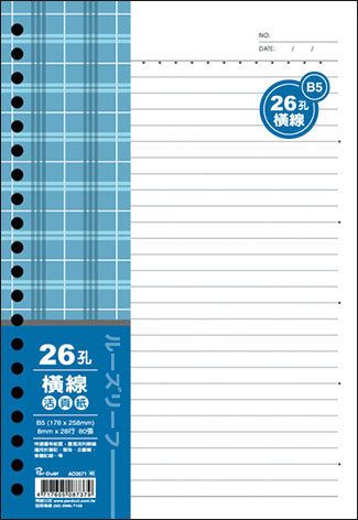 商品名稱:博崴 AO3571 B5 26孔布格紋活頁紙-橫線 -5包入 / 袋商品單位:5包入 / 袋商品型號:AO3571商品規格介紹:◎尺寸:176W x 257H◎入數:80張(包)◎適用於:B5/26孔夾◎橫線:8 mm ruled line廠商代號:ARA責任代號:HYC