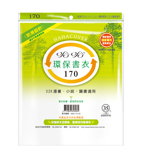 ◎ 品 名:哈哈書套 BBC170 環保書衣 17.3 x 25cm 32K漫畫.小說.圖書適用 -12張入 / 包