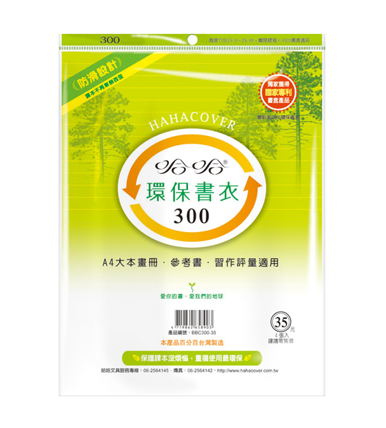 ◎ 品 名:哈哈書套 BBC300 環保書衣 20.1 x 44cm A4大本畫冊.參考書.習作評量適用