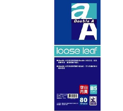 ◆商品名稱:Double A B5 活頁紙-空白內頁 80張入/本