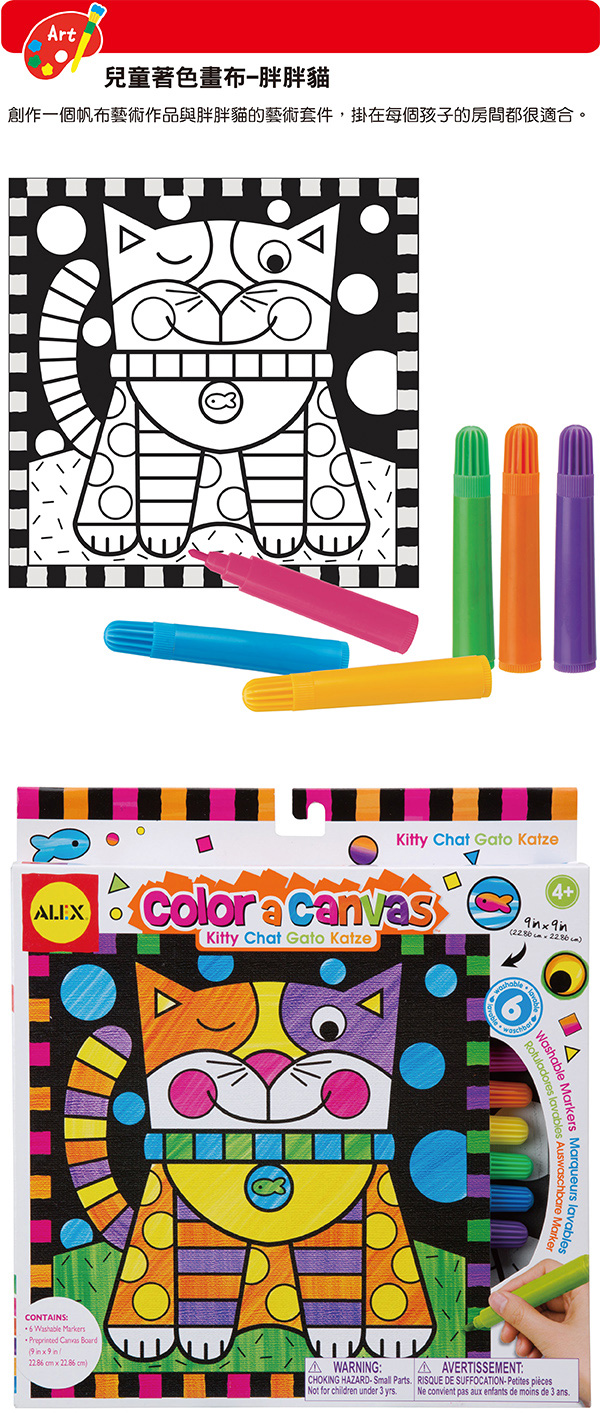 >【美國ALEX】兒童著色畫布-胖胖貓 / 盒