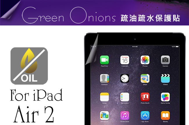 yardiX代理【Green Onions Oleophobic 抗油水平板保護貼--iPad Air2款】