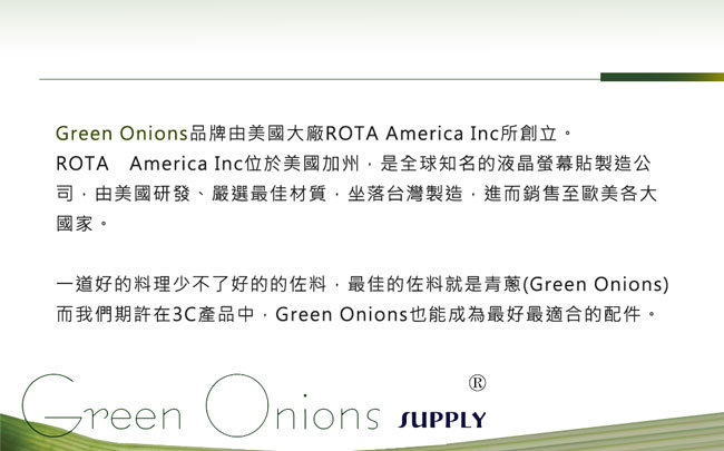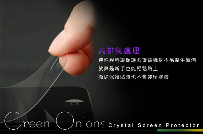 Green Onions的保護貼防指紋處理,手指在螢幕上滑行也不容易沾黏手紋又滑順。
